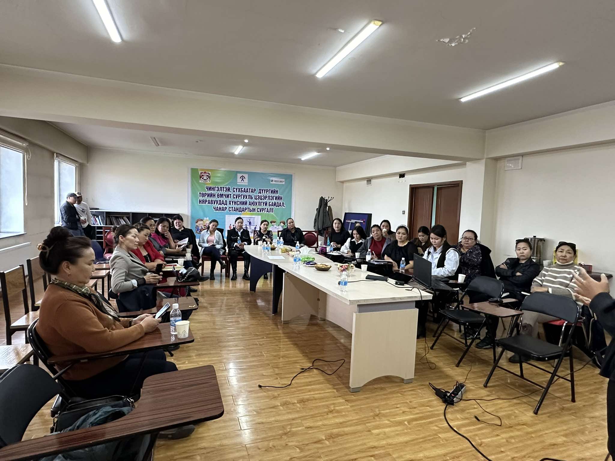 Нийслэлийн Хүнс хөдөө аж ахуйн газар, Грийн групптэй хамтран Чингэлтэй, Сүхбаатар дүүргийн төрийн өмчит 60 сургууль, цэцэрлэгийн няравуудад бараа бүтээгдэхүүнийг цахимаар хэрхэн захиалах, мөрдөгдөж буй эрүүл ахуйн стандартын талаар ажлын уялдаа холбоог сайжруулах, цаашид няравуудыг захиалгыг цахимаар хийх арга барилд суралцуулах зорилготой "Хүнсний аюулгүй байдал, чанар стандарт шаардлагыг хэрэгжүүлэх" нь сэдэвт сургалтыг 10 дугаар сарын 03, 04-ний өдрүүдэд зохион байгууллаа. Сургалтаар:Хүнсний аюулгүй байдал, чанар стандарт шаардлагыг хэрэгжүүлэх талаар Хүнс хөдөө аж ахуйн газрын байцаагч нар, хүнсний бүтээгдэхүүний шинжилгээний бичиг, бараа бүтээгдэхүүний онцлог,ын талаар эрүүл ахуйч, ХАБЭА, Дотоод хяналтын ажилтан цахим захиалга хэрхэн хийх талаар архив бичиг хэргийн ажилтан ойлголт мэдлэгийг өгч ажиллаа.